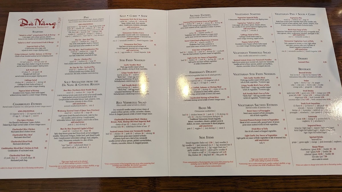 Da Nang Vietnamese Restaurant Menu
